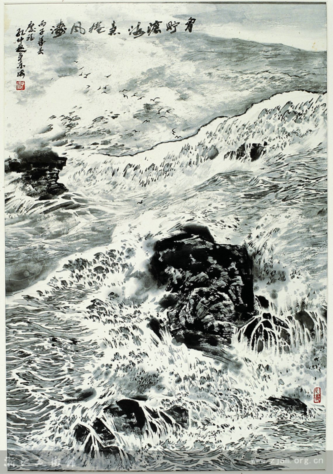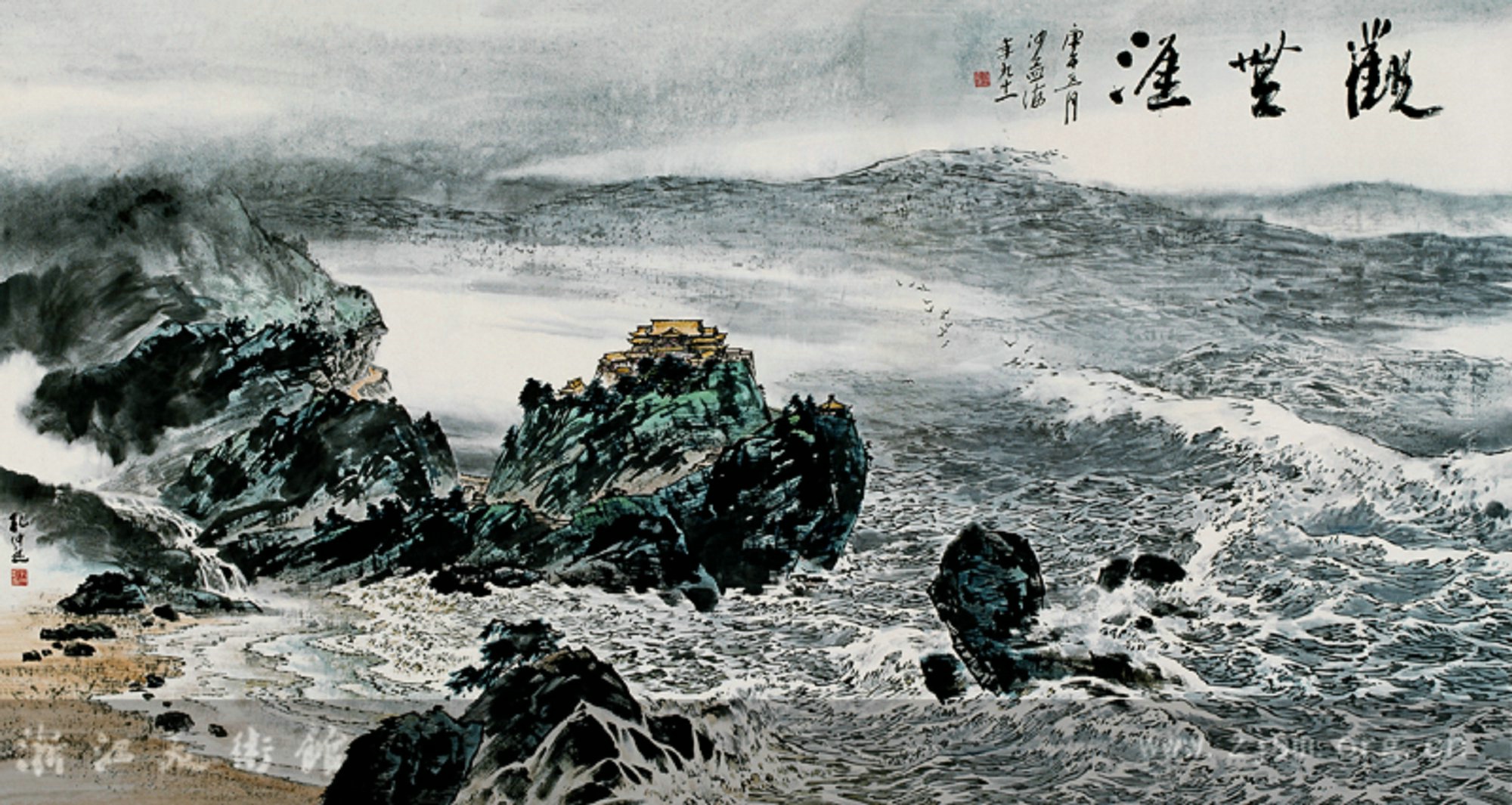 《胸贮沧海意卷风涛》100×69cm,1996年